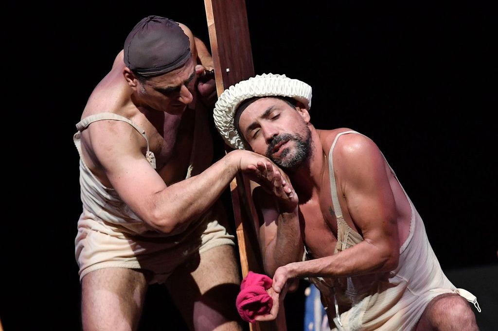 Giambattista Basile alla maniera di Emma Dante, con due attori, Carmine Marignola e Salvatore D’Onofrio, per tre personaggi: due vecchissime sorelle e un Re, che si innamora di una di loro credendola ragazza.