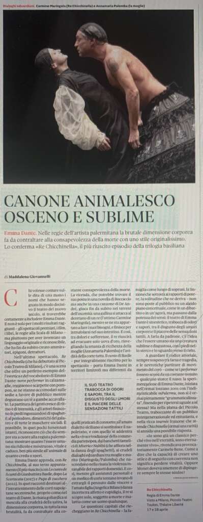 L’analisi di Maddalena Giovannelli sul Sole 24Ore di Re Chicchinella di Emma Dante