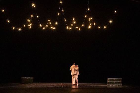 Una vecchina fruga dentro un baule. Estrae un flacone di pillole, un velo da sposa, un telecomando, tanti palloncini colorati… Da un altro baule arriva la musica di un carillon. compare un uomo anziano. Indossa un vecchio abito da cerimonia liso dal tempo. L’uomo guarda la donna e sorride. Subito la raggiunge. L’abbraccia. La donna appoggia la testa sulla spalla di lui. Lui le fa una carezza. Lei lo tiene stretto per non perdere l’equilibrio. Lui la sostiene. Ballano. Lui estrae dalla tasca un orologio da taschino: meno cinque… meno quattro… meno tre… meno due… meno uno… e al rintocco della mezzanotte lui fa scoppiare un petardo. Si baciano. Lui lancia in aria una manciata di coriandoli. La festa ha inizio. Buon anno, amore mio! Lui e lei adesso hanno sedici anni. In costume da bagno si promettono amore eterno. Sulle note di vecchie canzoni festeggiano l’arrivo dell’anno nuovo ballando a ritroso la loro storia d’amore. Il tango delle capinere è l’approfondimento di uno studio, Ballarini, che apparteneva alla trilogia degli occhiali. E’ il componimento di un mosaico dei ricordi che rende sopportabile la solitudine di chi disgraziatamente sopravvive all’altro.