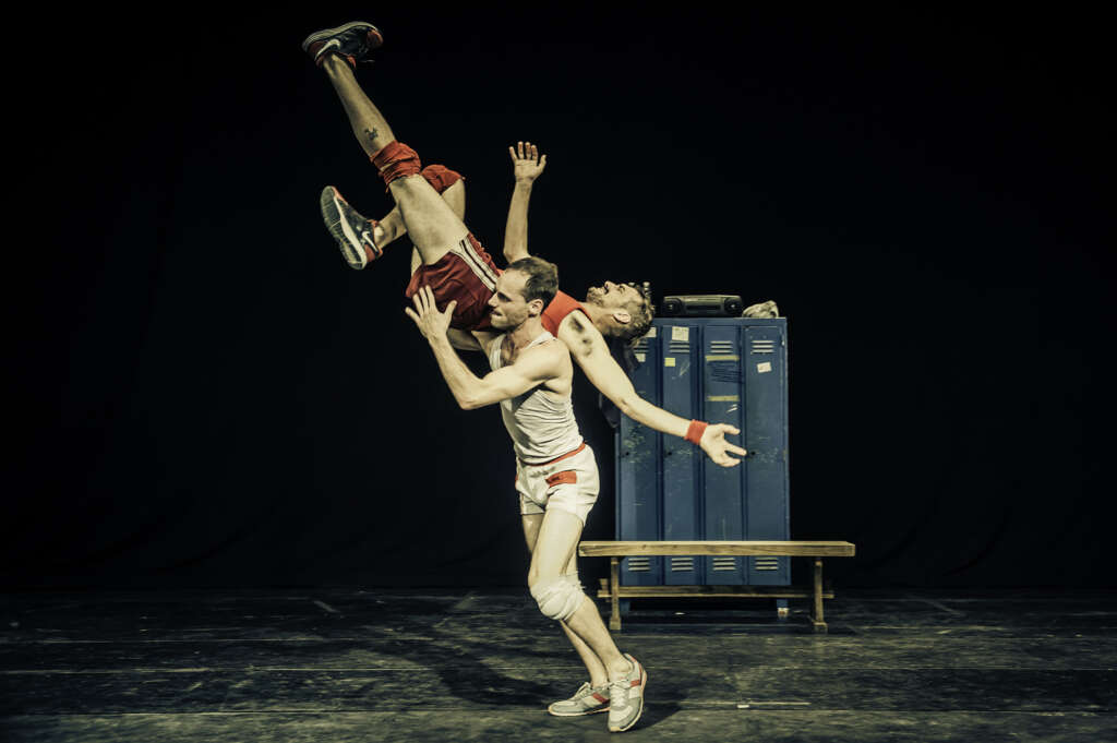 Due uomini e una radio dal vivo, in uno spogliatoio. Si affrontano, sfidano, combattono e si seducono. Un interessante mix di teatro-danza, acrobatica, comicità e sensualità. Un’opera che, partendo dal linguaggio del corpo, esplora i limiti del linguaggio contemporaneo. Una provocazione, un invito a ridere di noi stessi, e allo stesso tempo, ad accettarci per ciò che siamo.